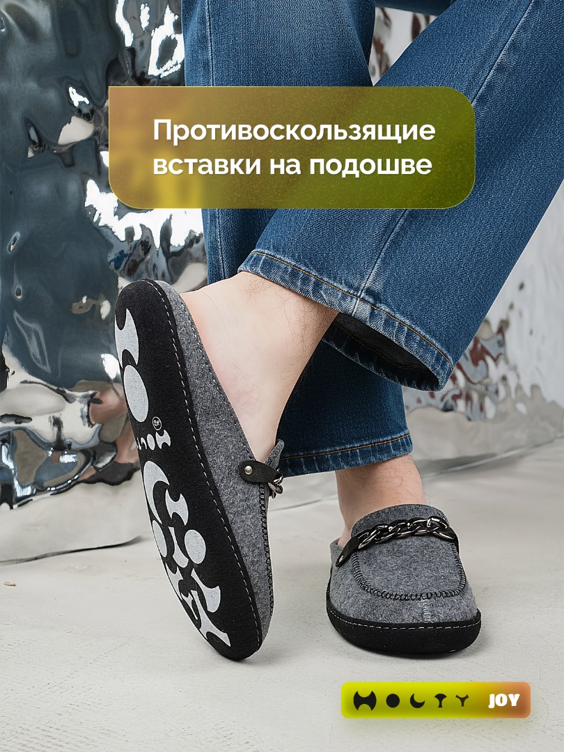 Главная / Каталог / Домашние тапочки / Тапочки из войлока / Тапочки из искусственного войлока / Тапочки ХОЛТИ "Мокасины" мужские войлочные (темно-серый)