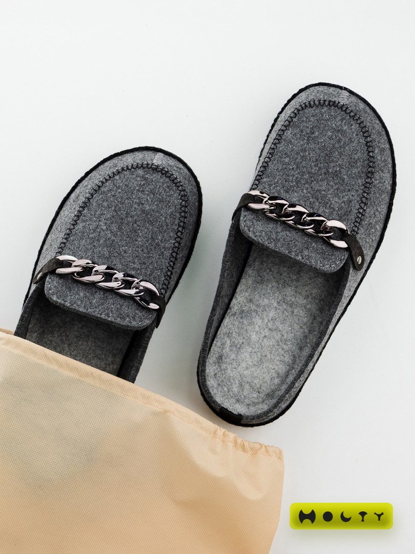 Преимущества тапочек из войлока "Мокасины" (темно-серые):