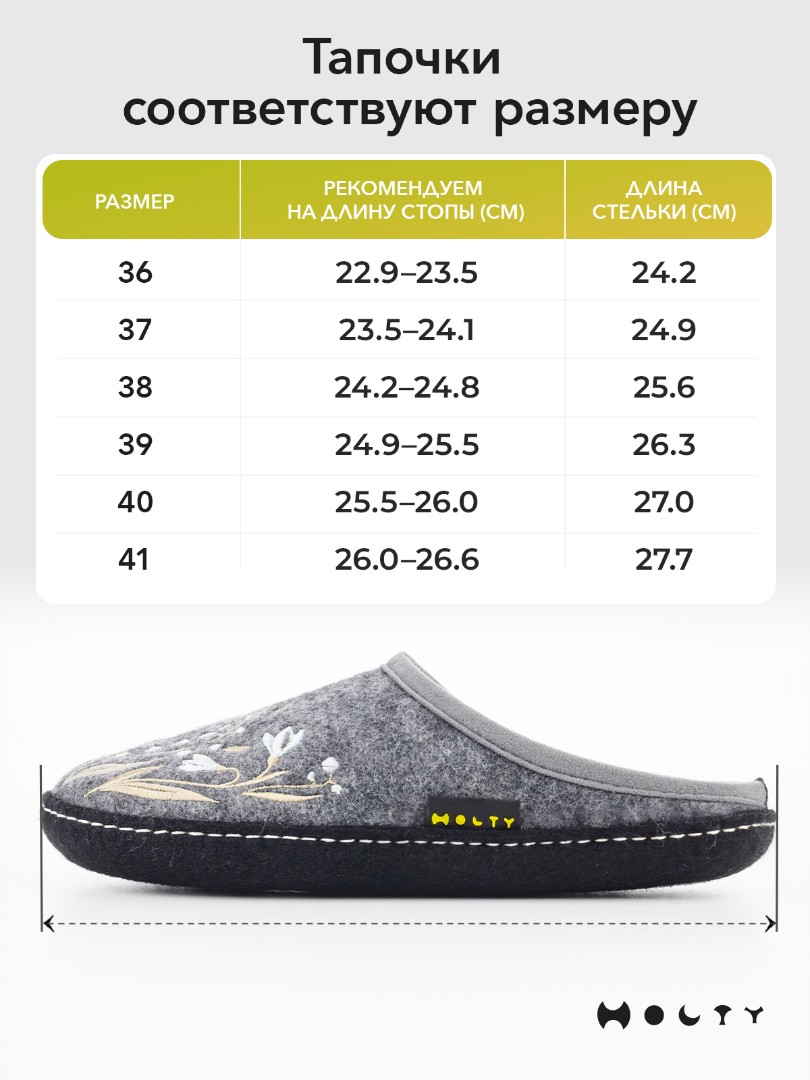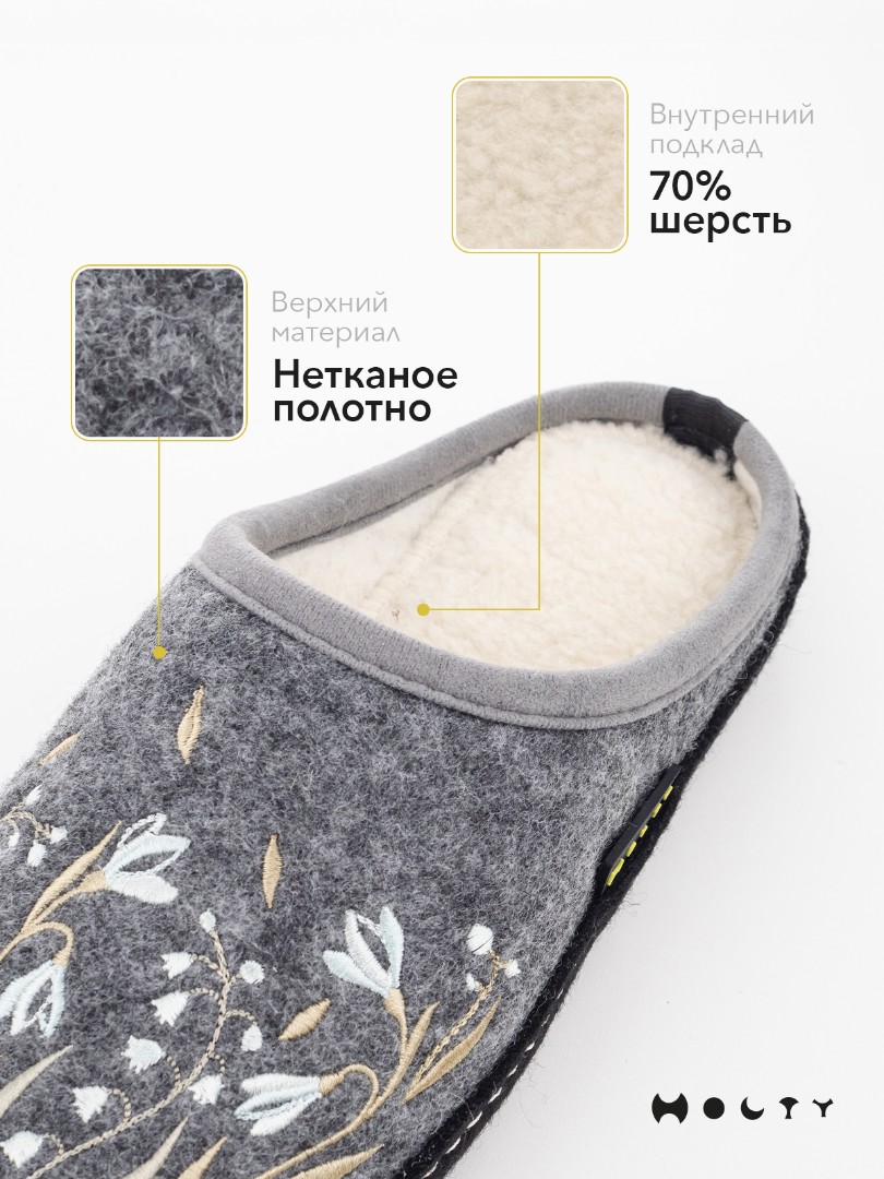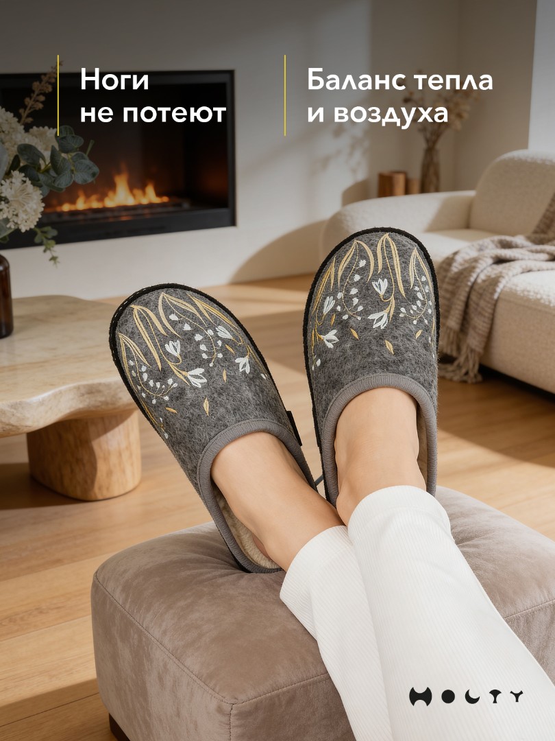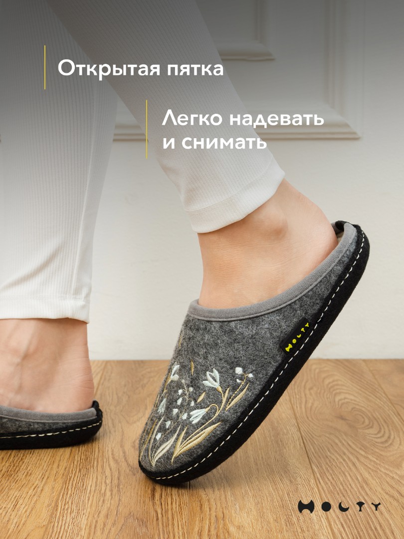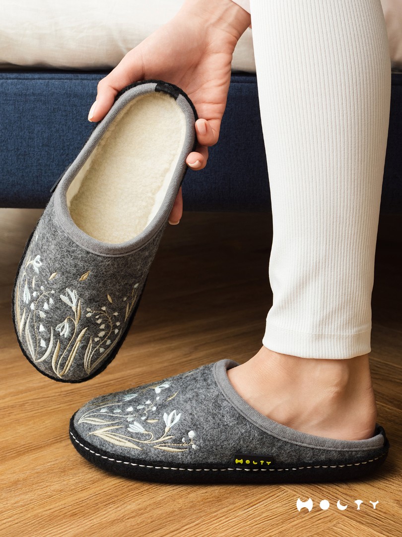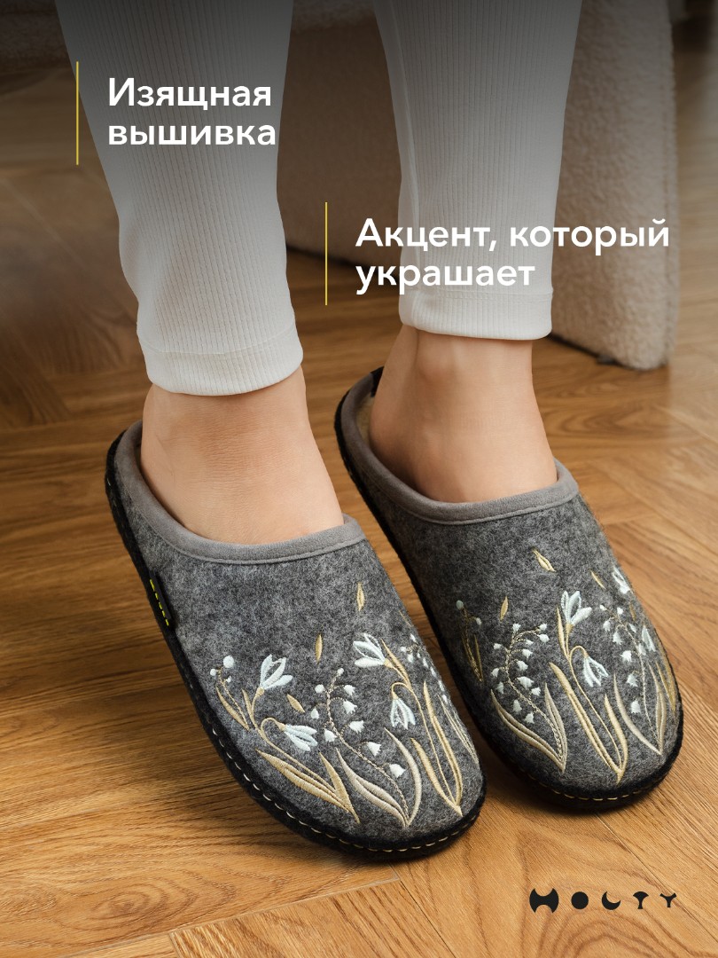 Главная / Каталог / Домашние тапочки / Тапочки из войлока / Тапочки из искусственного войлока / Тапочки ХОЛТИ "Ландыш" войлочные (темно-серый)