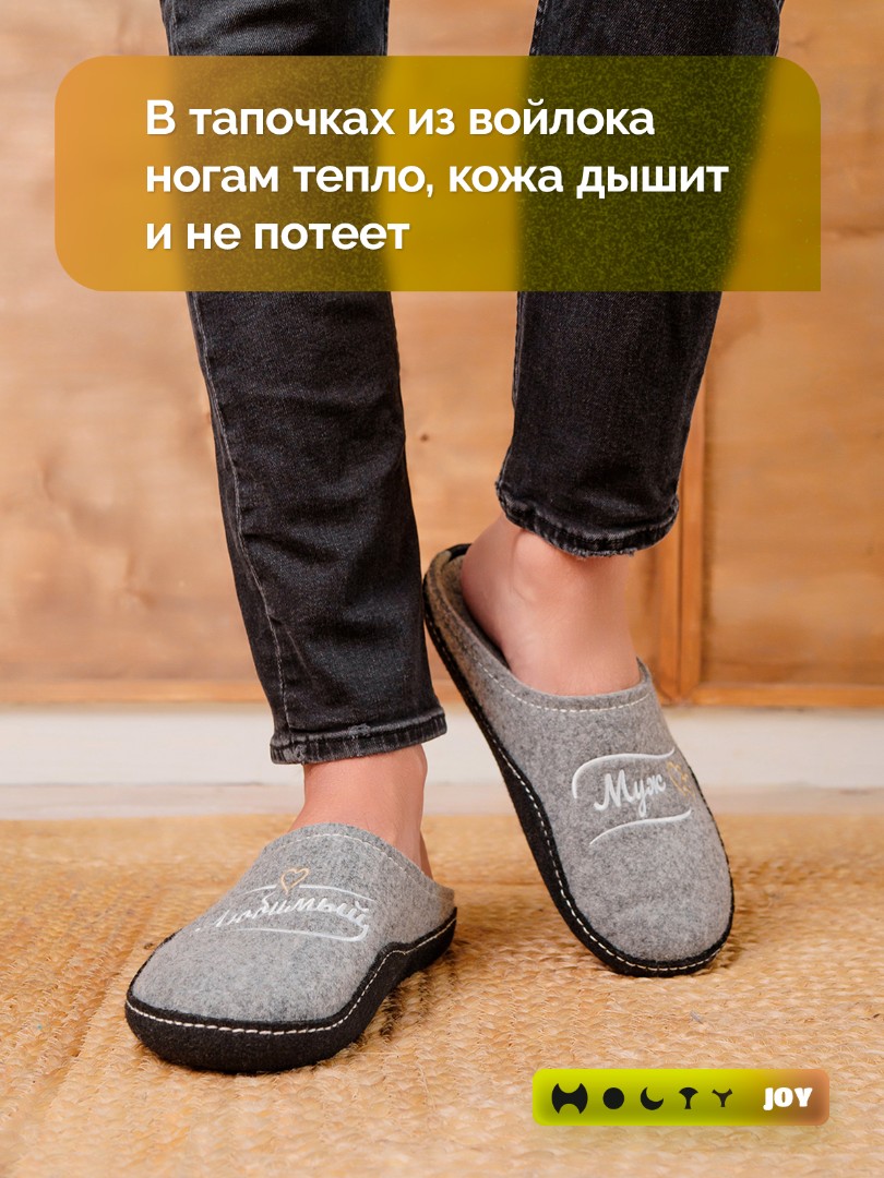 Купить войлочные тапочки "Любимый муж", модель "Сабетта" доставкой по Москве и всей России вы можете в интернет-магазине производителя тм "Холти"!