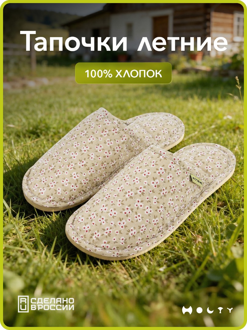 Тапочки летние от «Холти» выполнены из 100% хлопка.