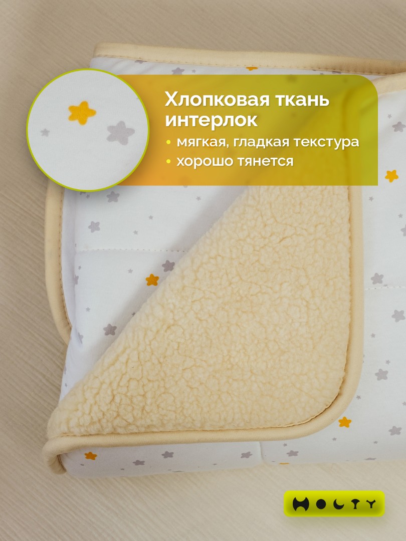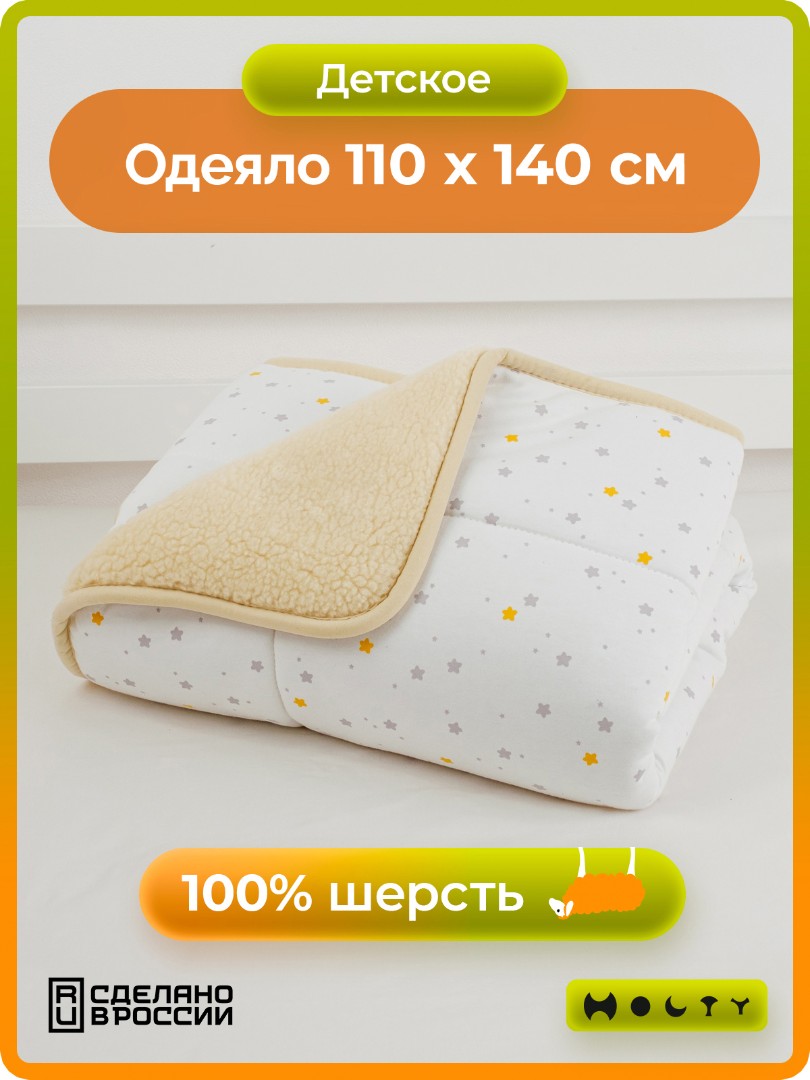 Главная / Каталог / Постельные принадлежности / Детские одеяла и подушки из шерсти / Детские одеяла из шерсти / Детское одеяло из овечьей шерсти "Фантазия" (звезды микс)