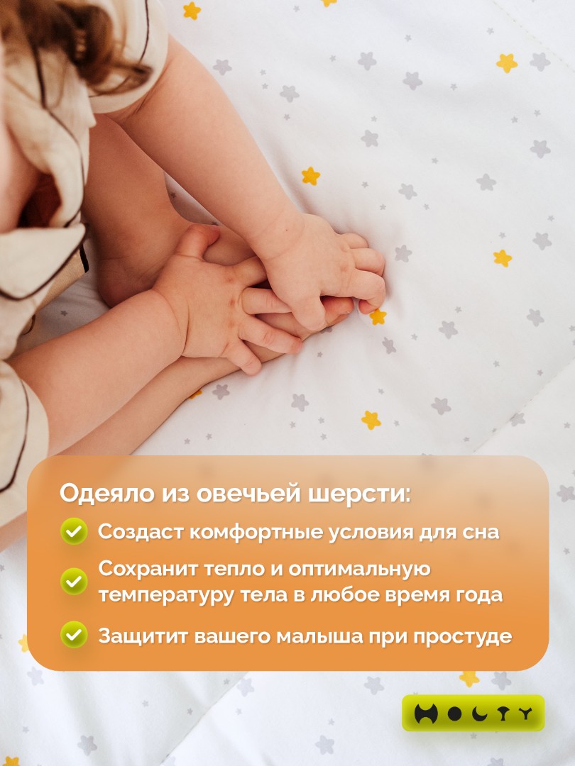 Нежное одеяло от Холти "Фантазия" из овечьей шерсти создано, чтобы дарить вашим деткам тепло и комфорт