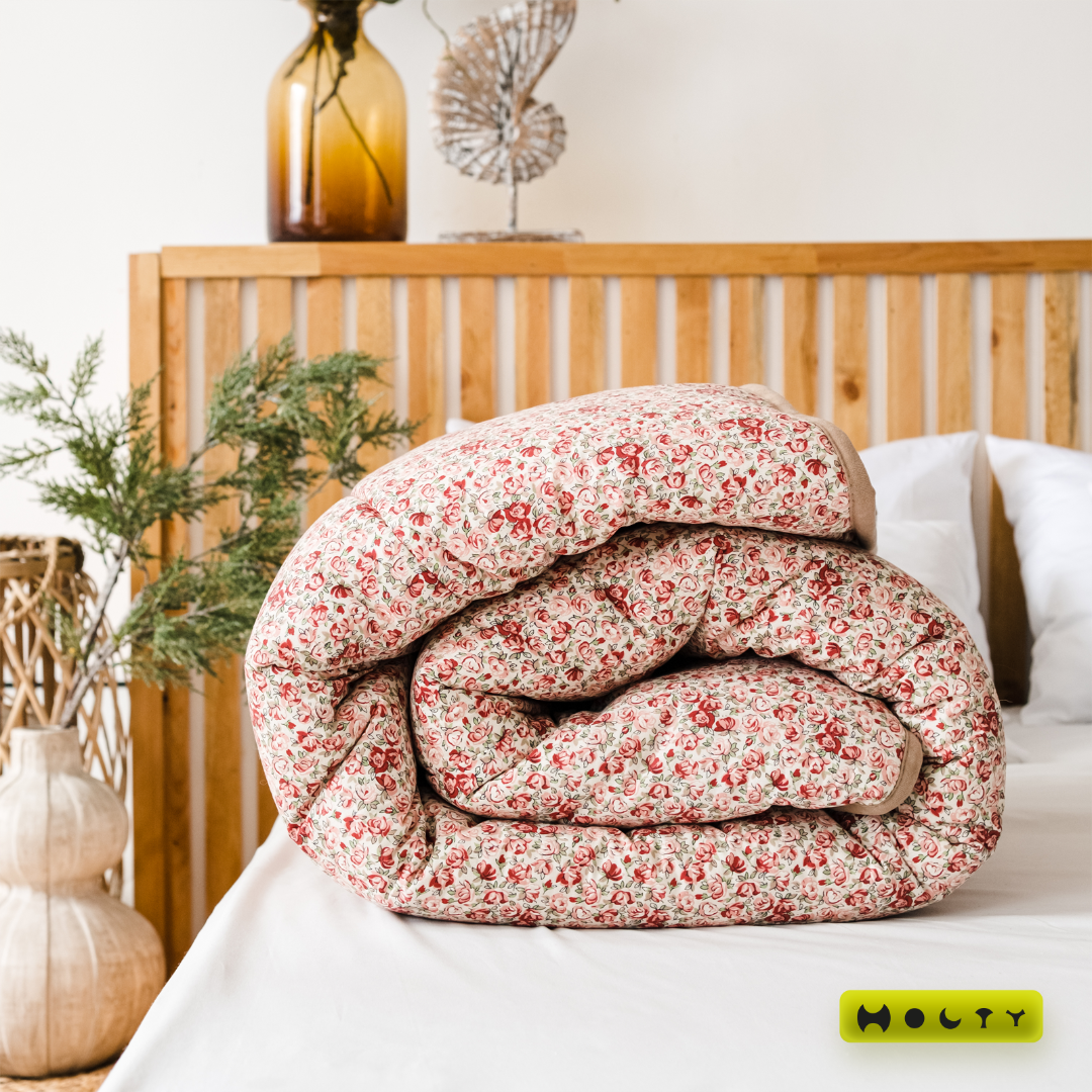 Купить одеяло из овечьей шерсти Классика "Цветочек" (красный) с доставкой по Москве и всей России Вы можете в нашем интернет-магазине производителя изделий из натуральной шерсти ТМ "Холти"!