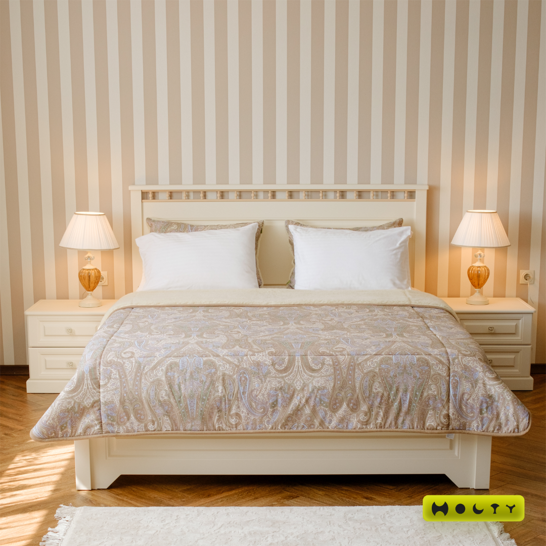 Купить одеяло из овечьей шерсти "Классика-сатин" с белым ворсом (кашмир) с доставкой по Москве и всей России Вы можете в нашем интернет-магазине производителя изделий из натуральной шерсти ТМ "Холти"!