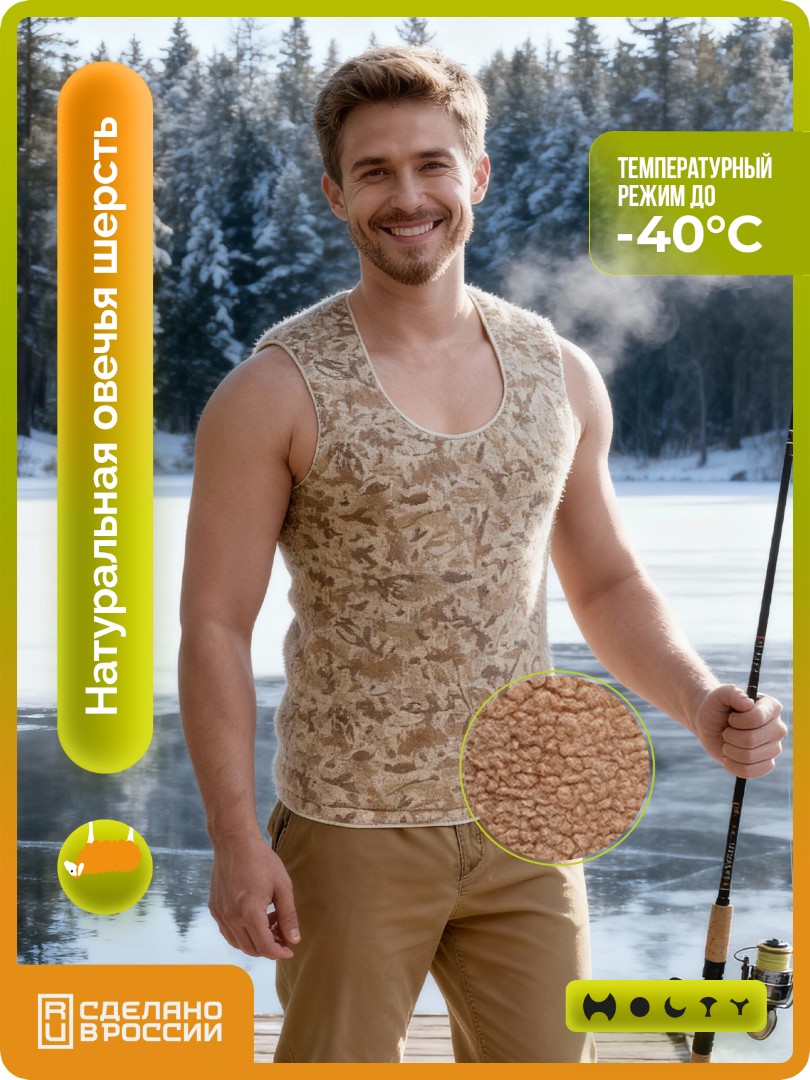 Главная / Каталог / Согревающие изделия / Майки из шерсти / Майка согревающая эластичная из натуральной овечьей шерсти (камуфляж)