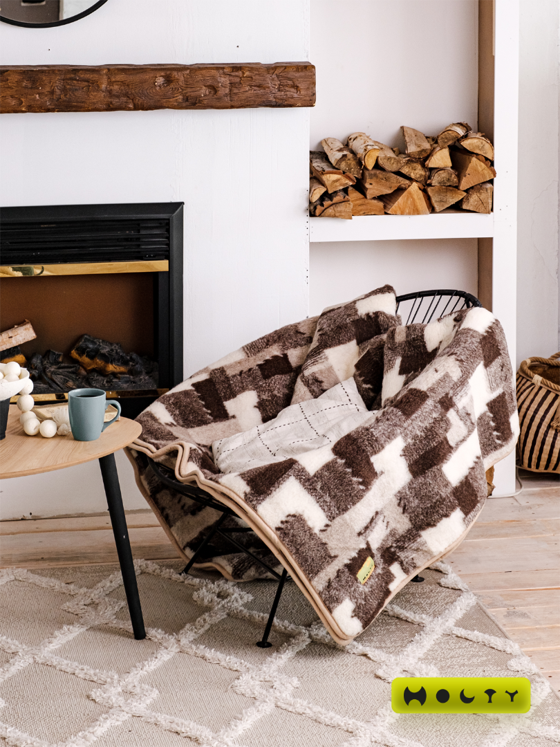 Купить плед из овечьей шерсти расцветки лоскуток с доставкой по Москве и всей России Вы можете в нашем интернет-магазине производителя изделий из натуральной шерсти ТМ "Холти"!