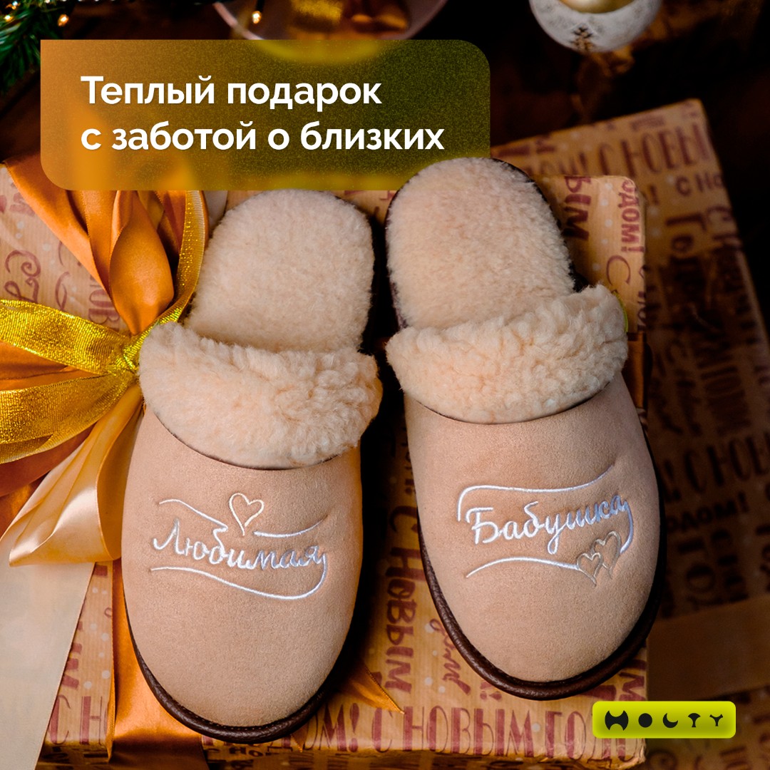 Купить подарочные меховые тапочки "Любимая бабушка" (бежевые) со стелькой памяти Вы можете в нашем интернет-магазине производителя изделий ТМ "Холти"! Доставка действует по Москве и всей России.