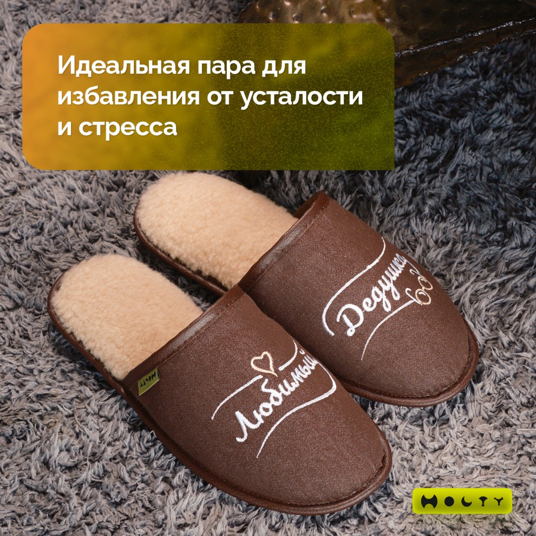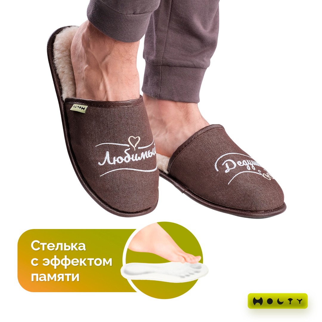 Преимущества коричневых меховых тапочек "Любимый дедушка" со стелькой памяти: