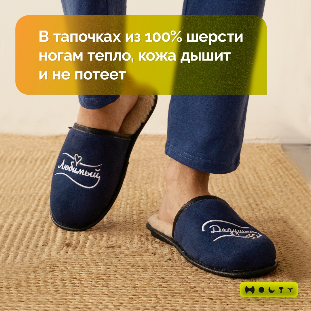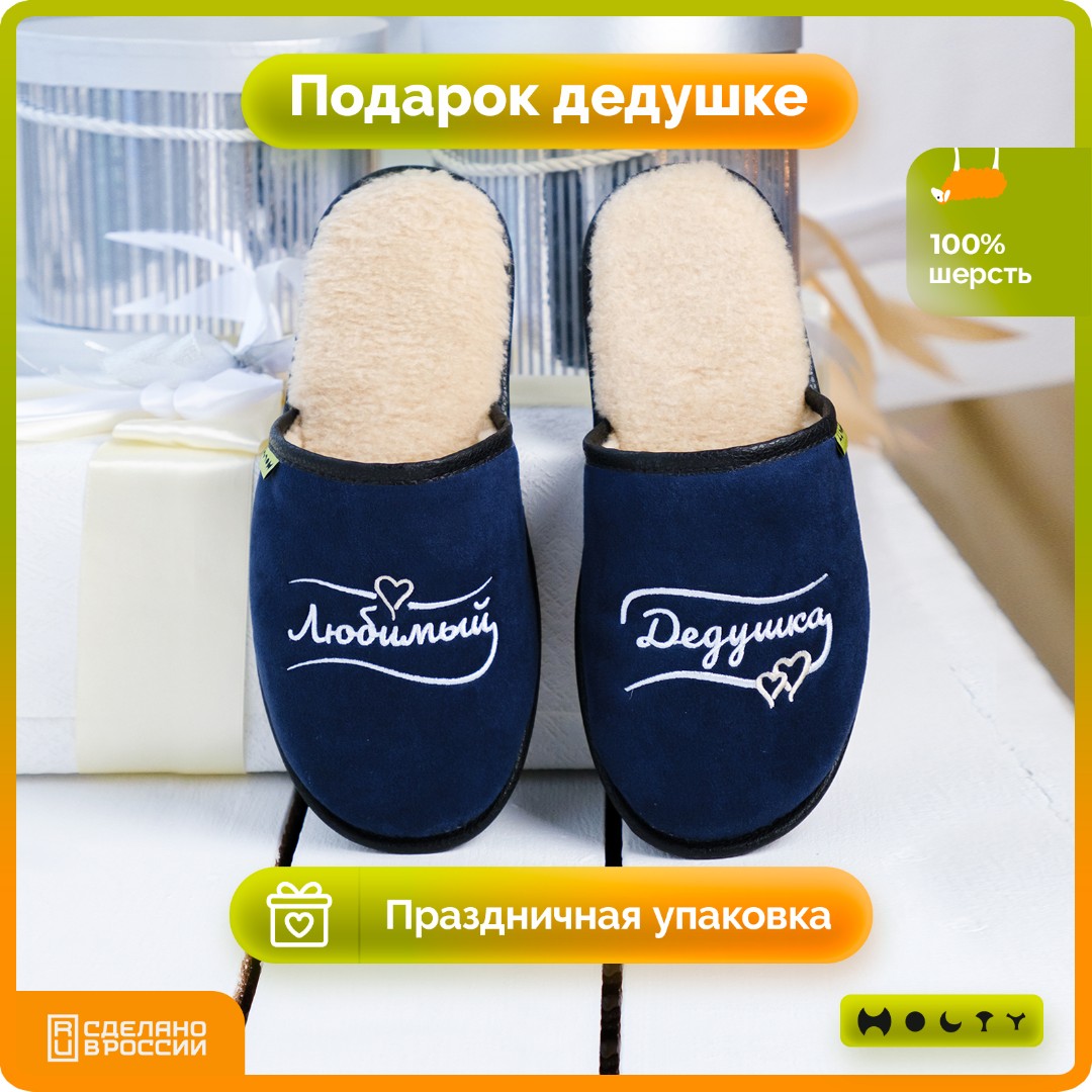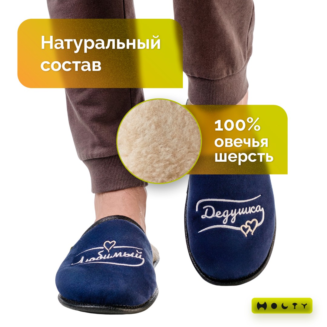Главная / Каталог / Уценённый товар со скидкой / Тапочки "Любимый Дедушка" из натуральной шерсти (синий) уценка