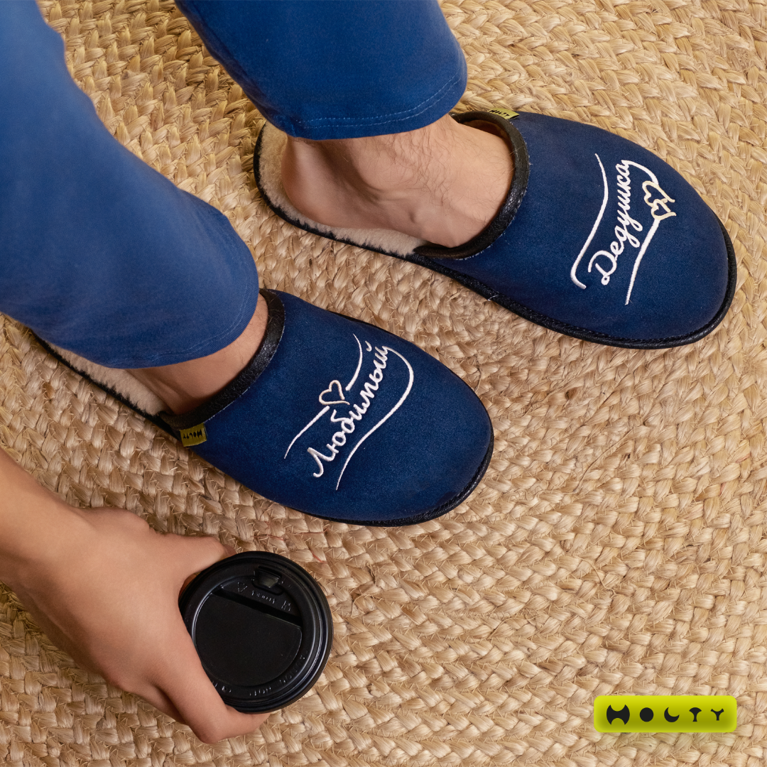 Купить подарочные меховые тапочки "Любимый дедушка" (синие) со стелькой памяти Вы можете в нашем интернет-магазине производителя изделий ТМ "Холти"! Доставка действует по Москве и всей России.