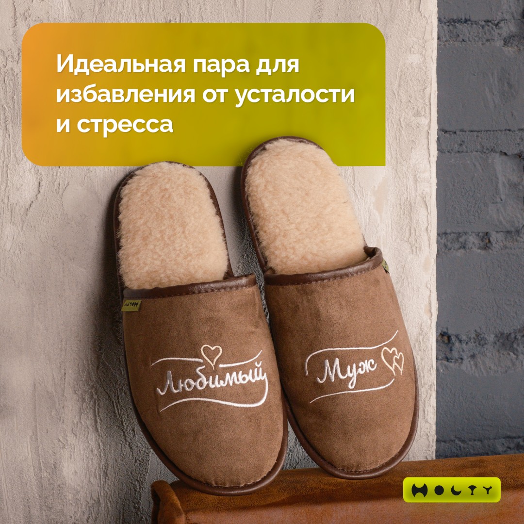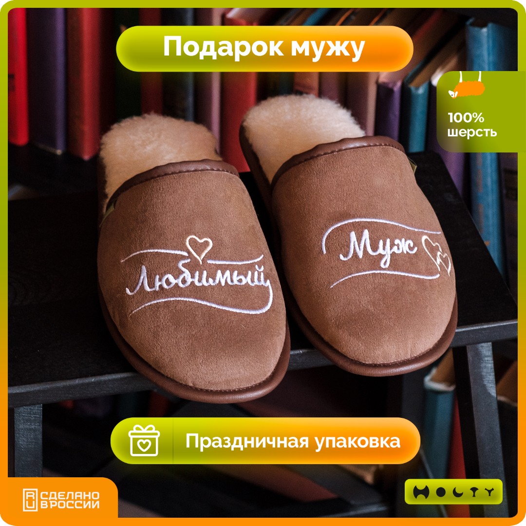 Купить подарочные меховые тапочки "Любимы муж" (коричнеый) со стелькой памяти Вы можете в нашем интернет-магазине производителя изделий ТМ "Холти"! Доставка действует по Москве и всей России.
