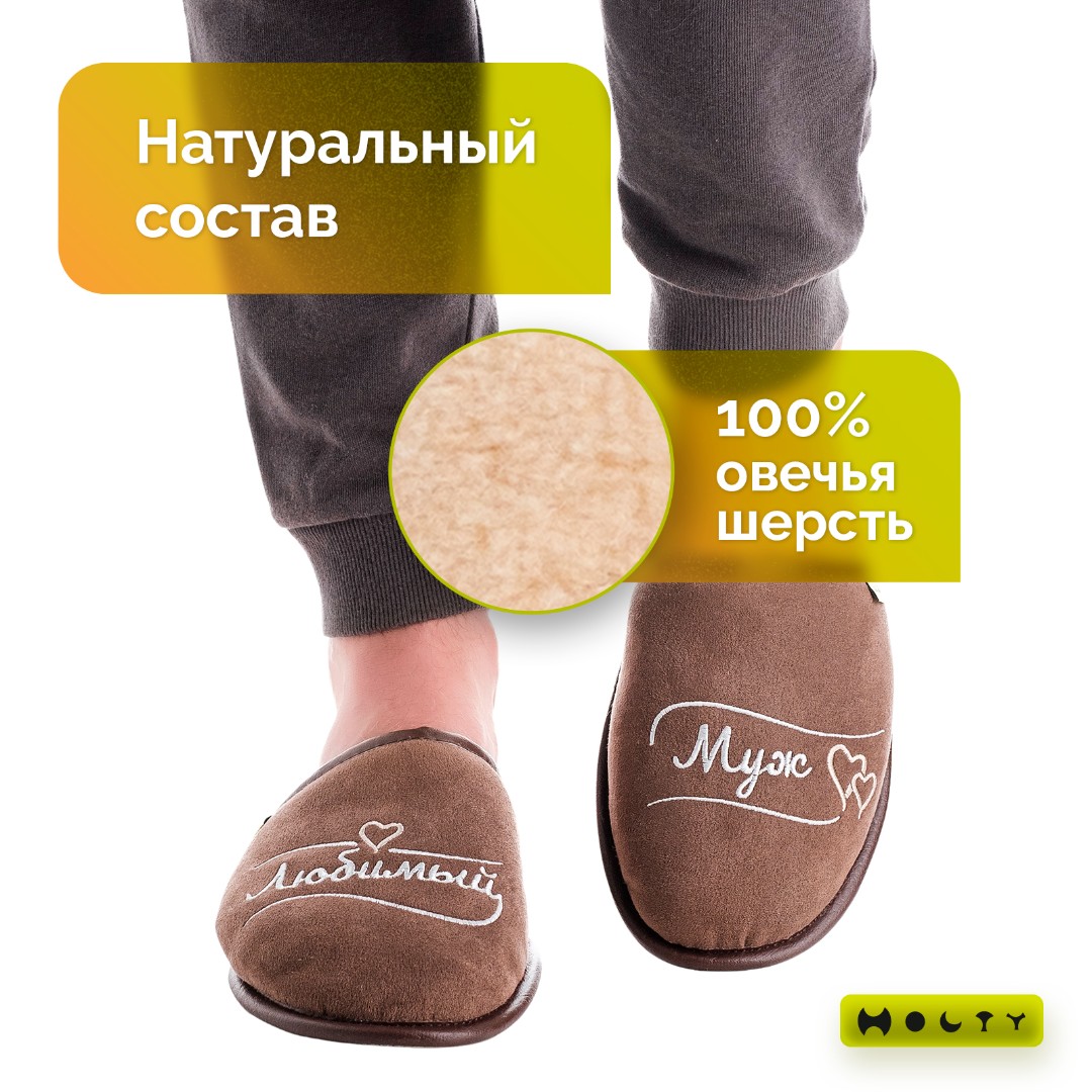 Главная / Каталог / Уценённый товар со скидкой / Тапочки "Любимый Муж" из натуральной шерсти (коричневый) уценка