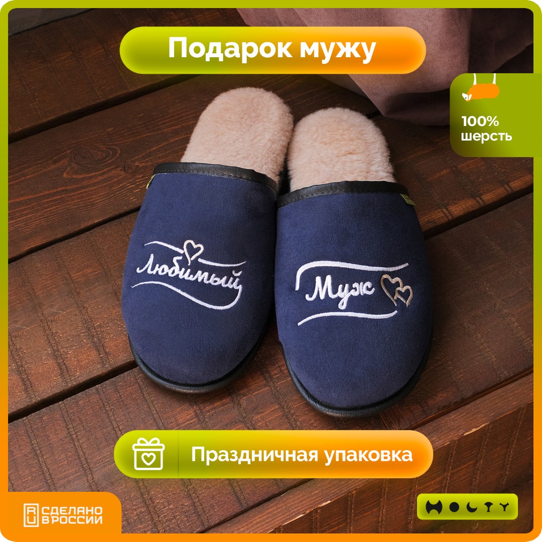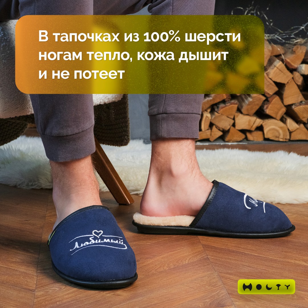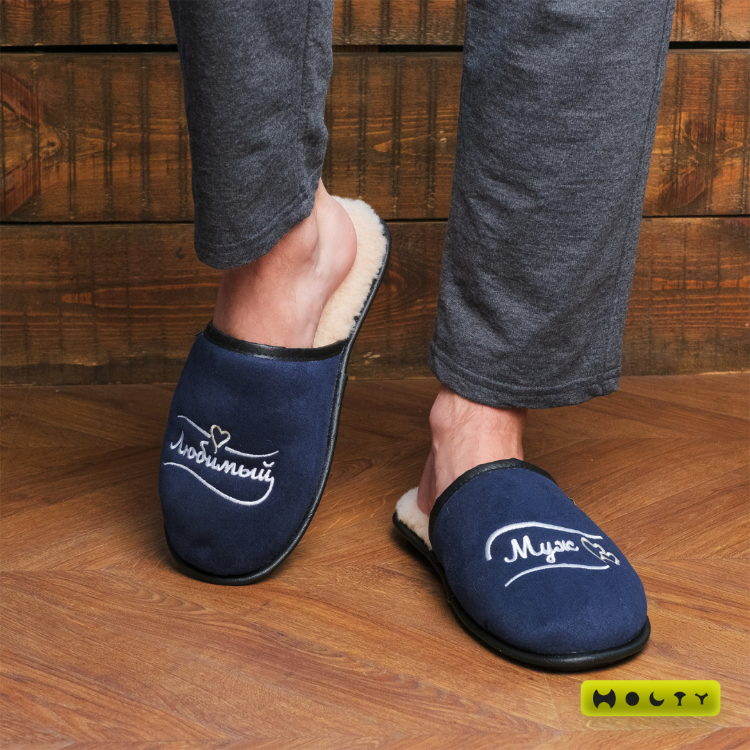 Главная / Каталог / Уценённый товар со скидкой / Тапочки "Любимый Муж" из натуральной шерсти (синий) уценка
