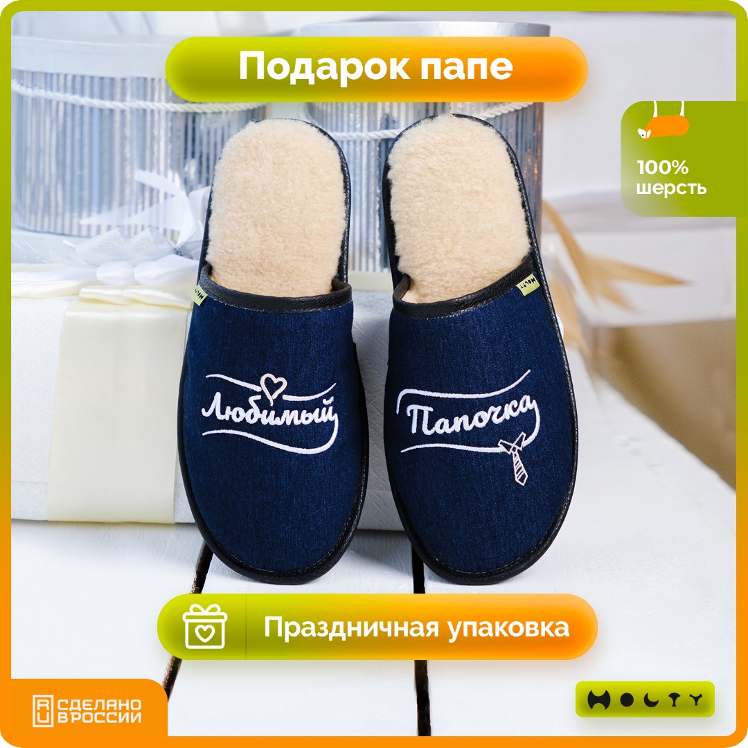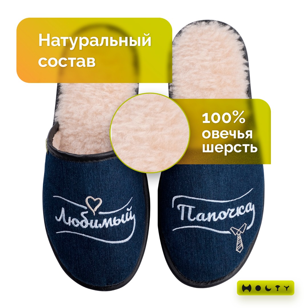 Главная / Каталог / Уценённый товар со скидкой / Тапочки "Любимый Папочка" из натуральной шерсти (синий) уценка