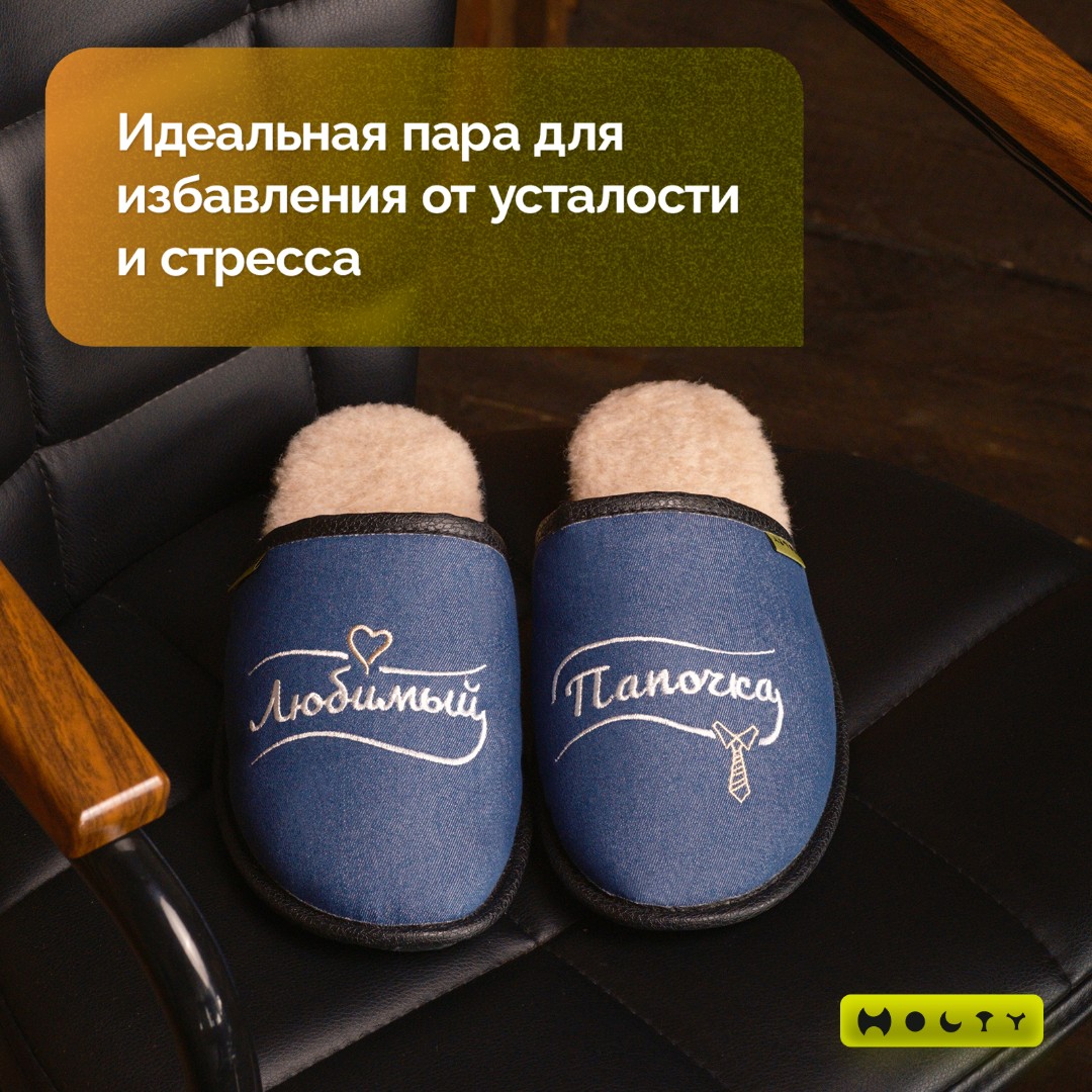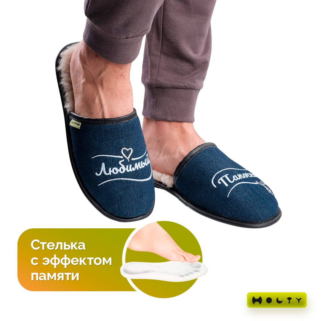 Преимущества синих меховых тапочек "Любимый папочка" со стелькой памяти: