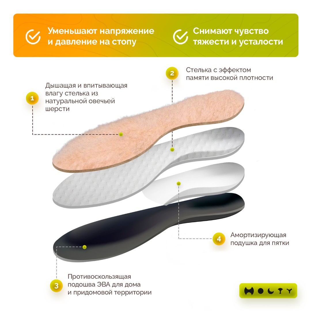 | Материал подошвы: | ЭВА (Этиленвинилацетат) прессованная - очень легкий материал, обладающий хорошими амортизирующими свойствами. Прошитая подошва - не промокает и не трескается. Имеются маленькие пупырышки, которые предотвращают скольжение. |