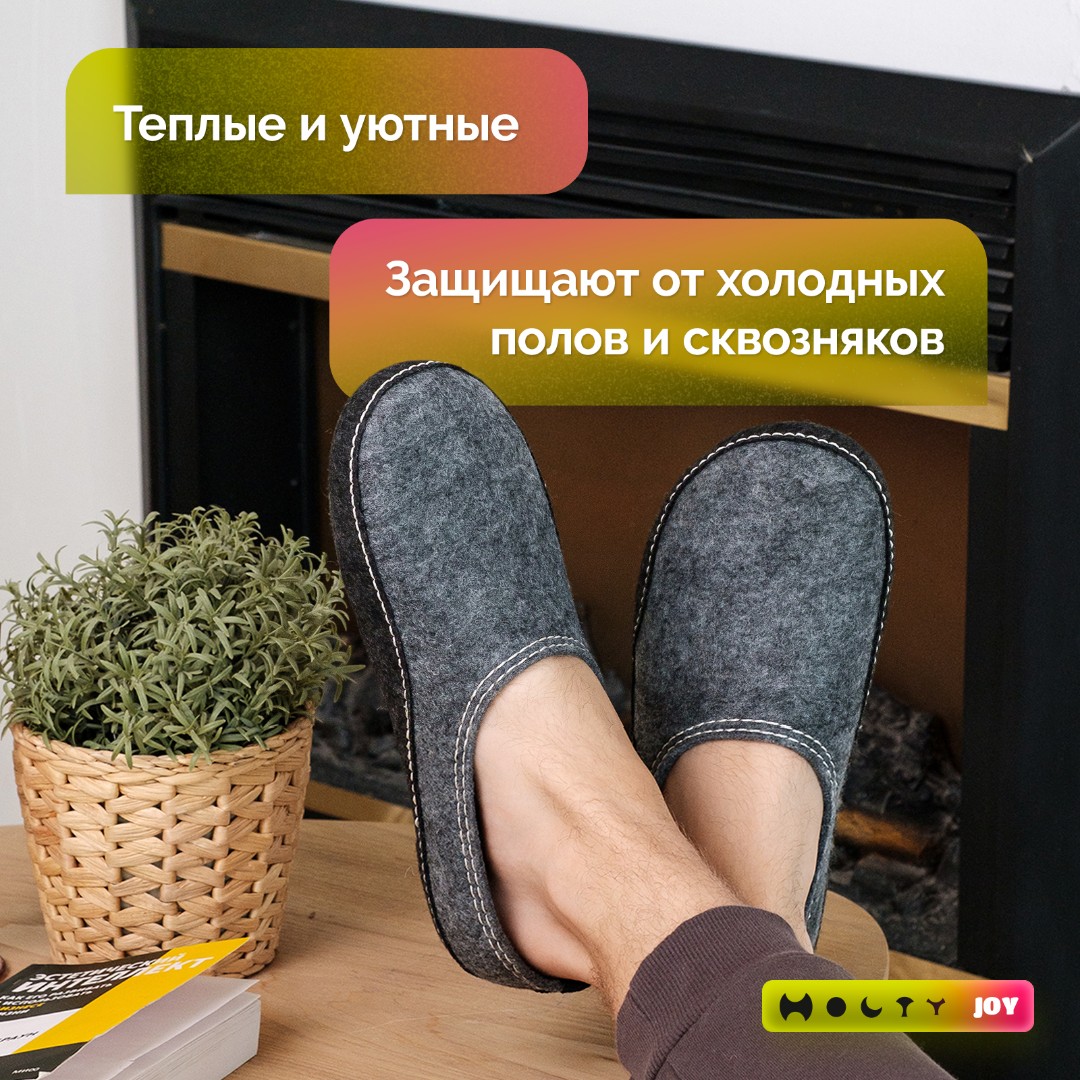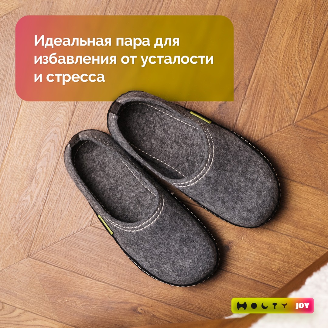 В них уютно и комфортно в любое время года: не жарко летом и тепло зимой. Тапочки для дома очень легкие - совершенно не ощущаются на ноге. А еще их просто надевать и снимать, для этого не нужно наклоняться. Тапки для дома из войлока не пачкаются, быстро впитывают влагу, Приятные и мягкие на ощупь.