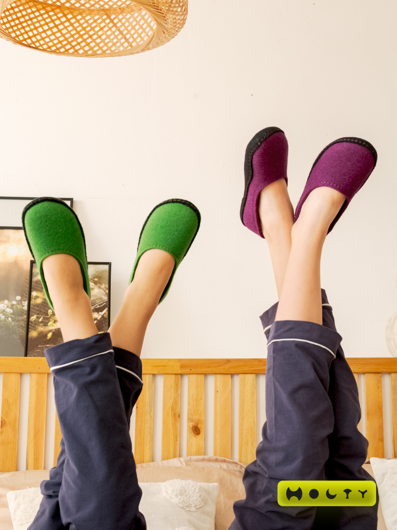 Преимущества детских тапочек из войлока закрытые (зеленые):