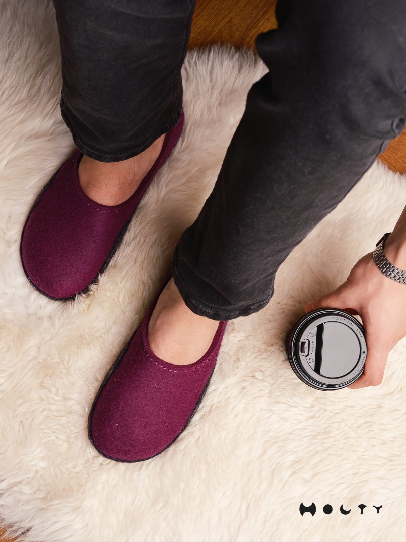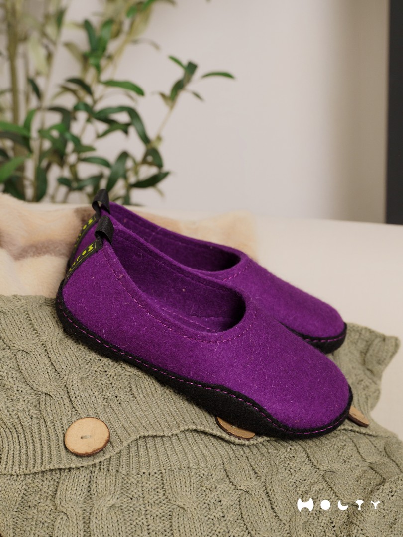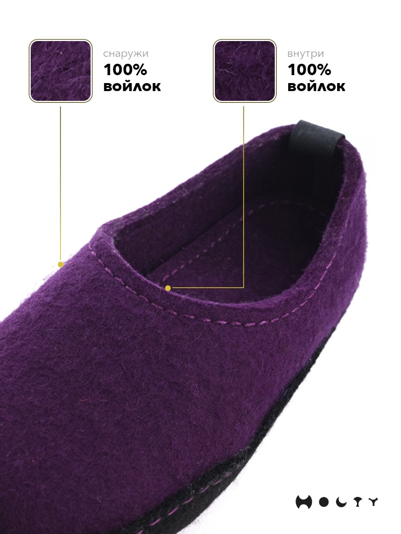 Преимущества тапочек из войлока закрытые (фиолетовые):