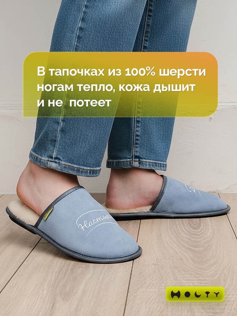 Преимущества голубых меховых тапочек "Настоящий друг" со стелькой памяти: