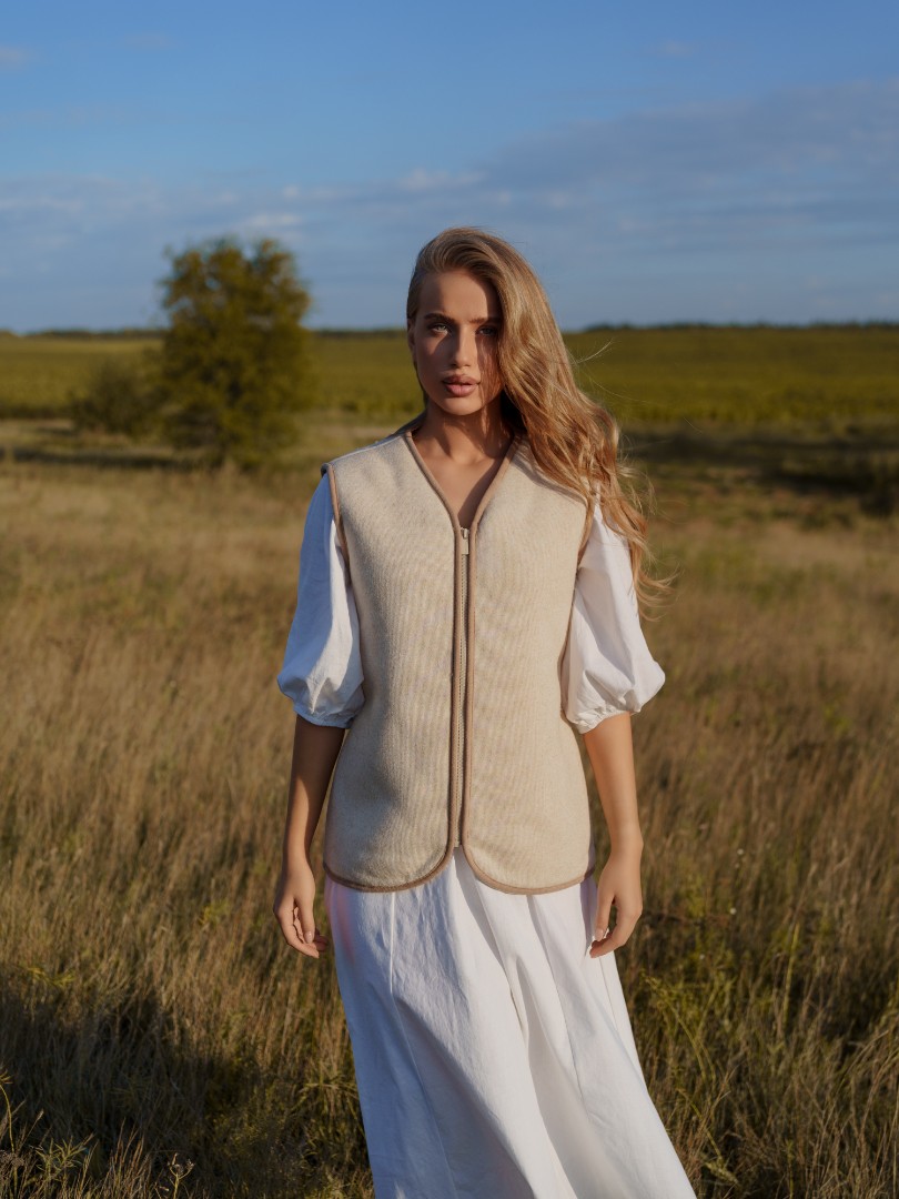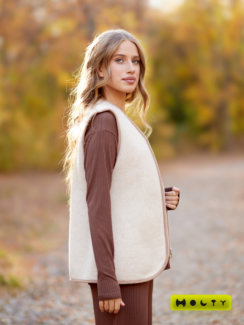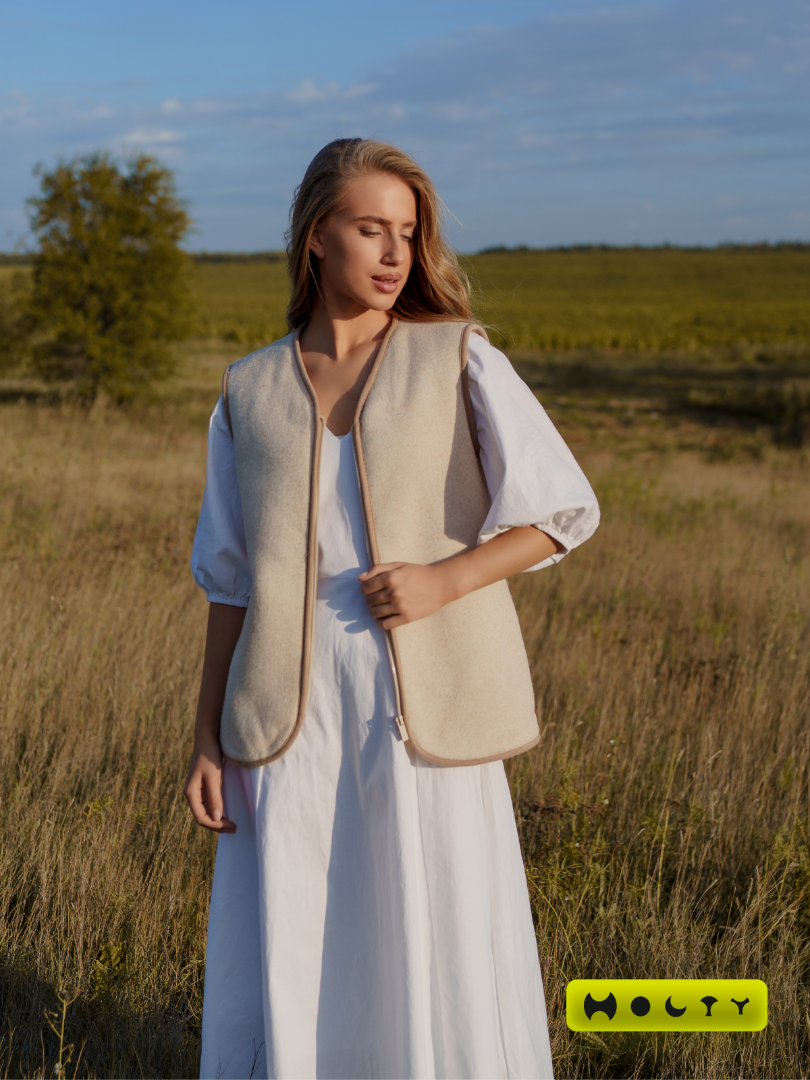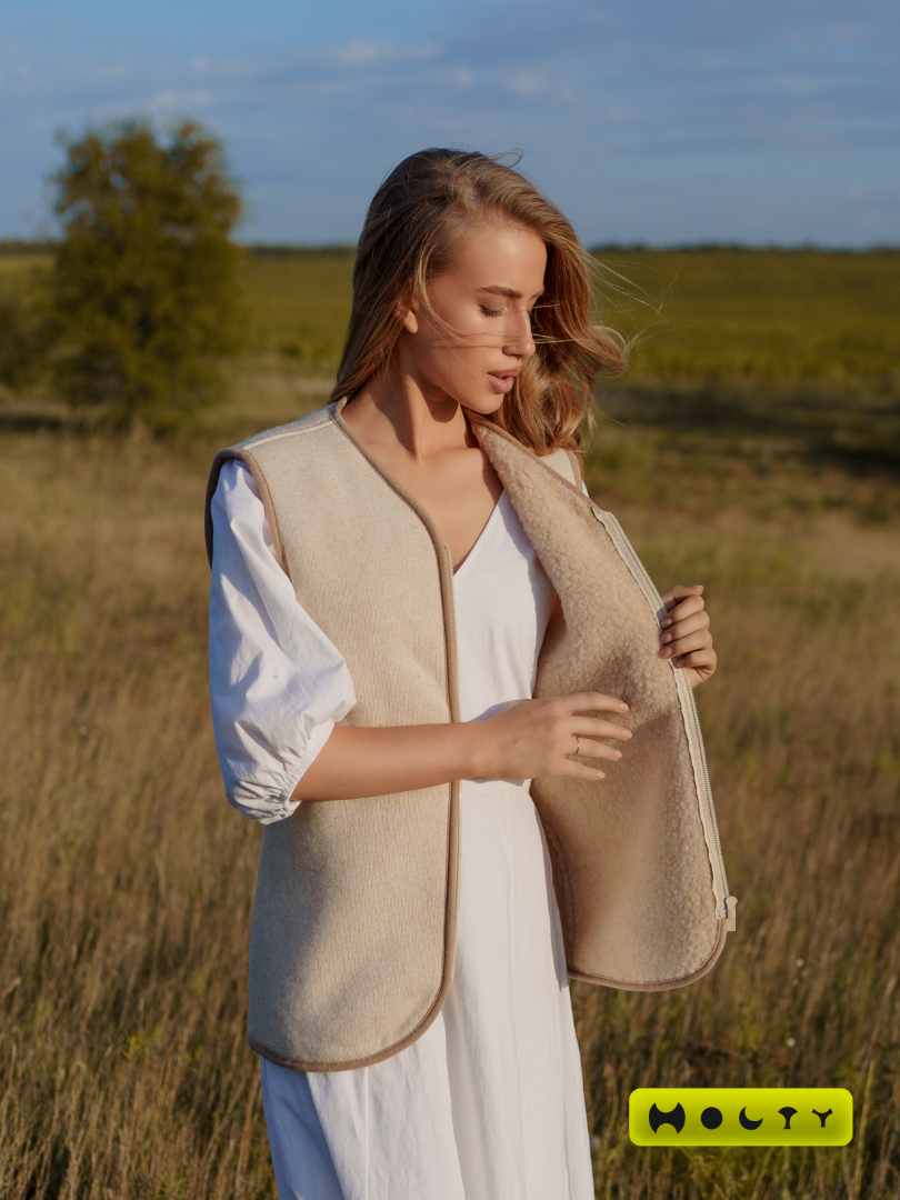 Купить женский жилет из шерсти "Кристина" (бежевый) без карманов с доставкой по Москве и всей России вы можете в интернет-магазине производителя тм "Холти"!