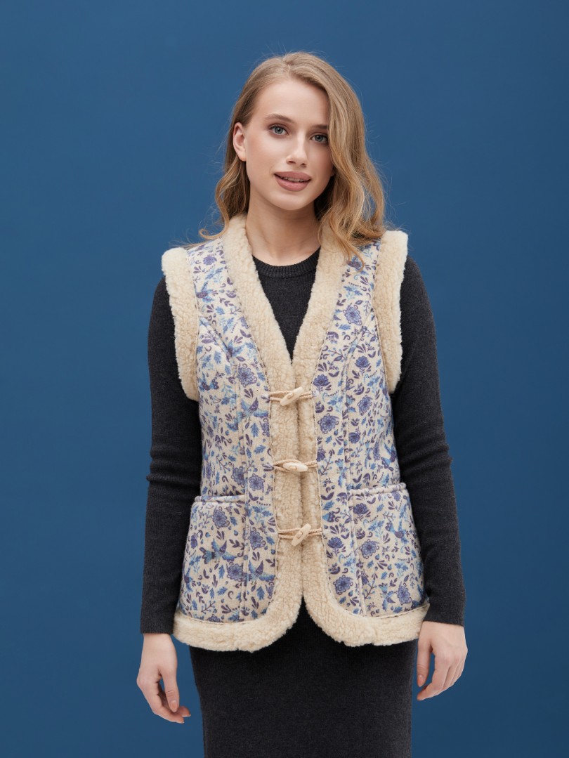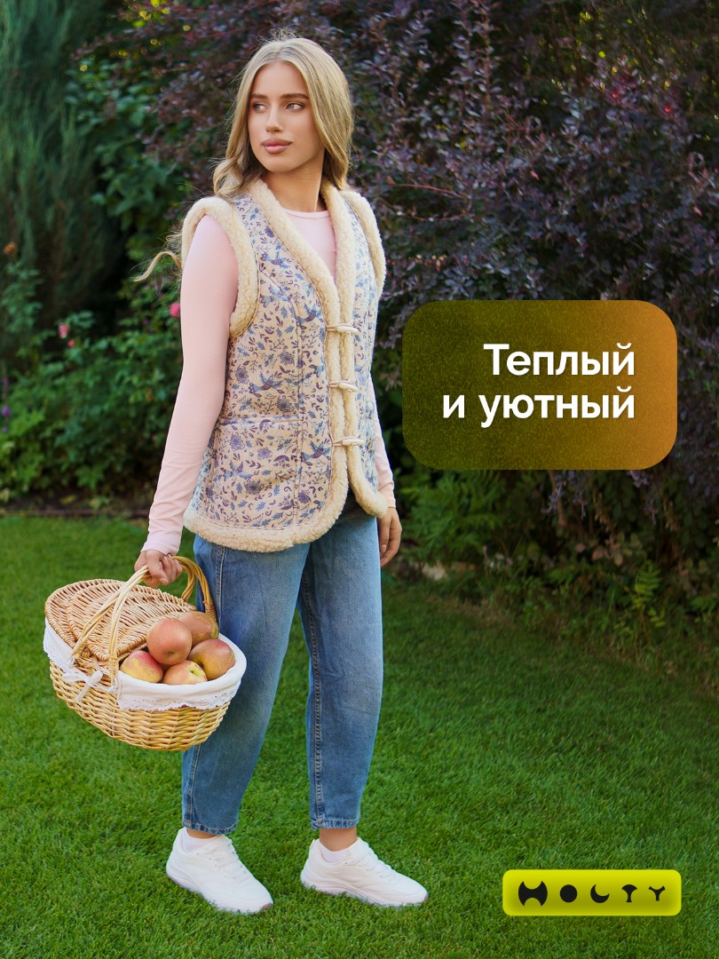 Купить женский жилет из шерсти "Забава" (птички) с застежкой с доставкой по Москве и всей России вы можете в интернет-магазине производителя тм "Холти"!